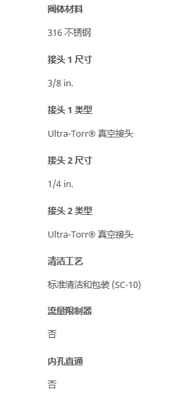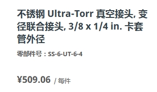 不锈钢 Ultra-Torr 真空接头, 变径联合接头, 3/8 x 1/4 in. 卡套管外径