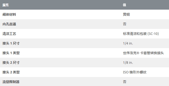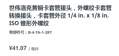 黄铜卡套管接头,外螺纹卡套管转换接头,卡套管外径 1/4 in. x 1/8 in. ISO 锥形外螺纹