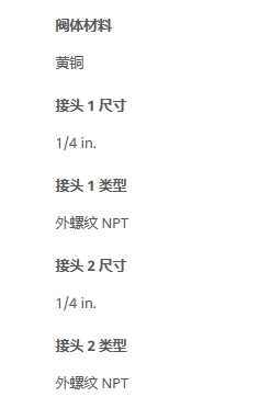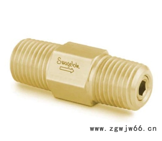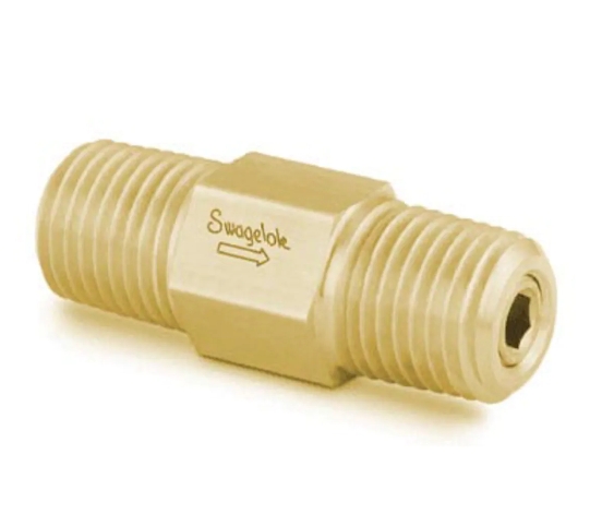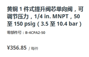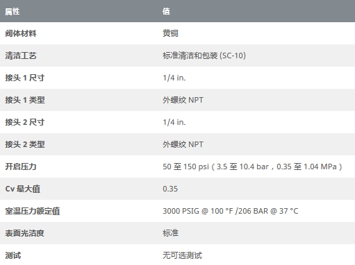 黄铜 1 件式提升阀芯单向阀,可调节压力,1/4 in. MNPT,50 至 150 psig(3.5 至 10.4 bar)