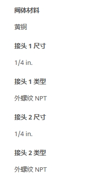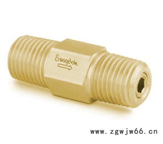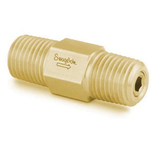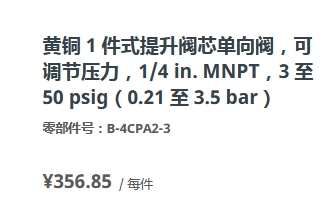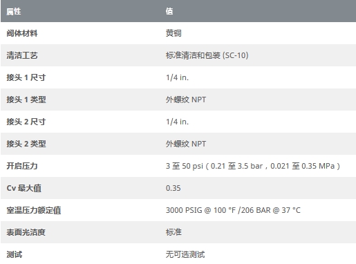 黄铜 1 件式提升阀芯单向阀,可调节压力,1/4 in. MNPT,3 至 50 psig(0.21 至 3.5 bar)
