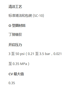 3 至 50 psi(0.21 至 3.5 bar,0.021 至 0.35 MPa)