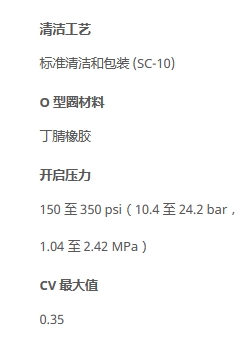 150 至 350 psi(10.4 至 24.2 bar,1.04 至 2.42 MPa)