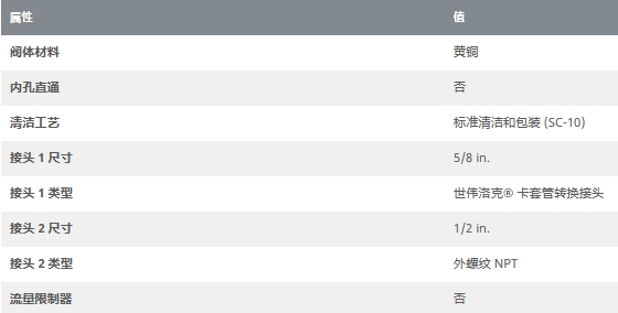 黄铜卡套管接头,外螺纹卡套管转换接头,5/8 in. 卡套管外径 x 1/2 in. 外螺纹 NPT