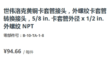 警告: 请勿将Swagelok产品或不符合工业设计标准的元件(包括Swagelok卡套管接头端接)与其他制造商的产品或元件混用/互换。