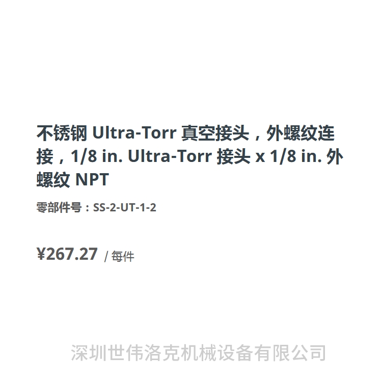 不锈钢 Ultra-Torr 真空接头,外螺纹连接,