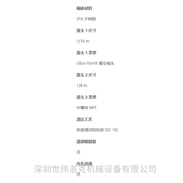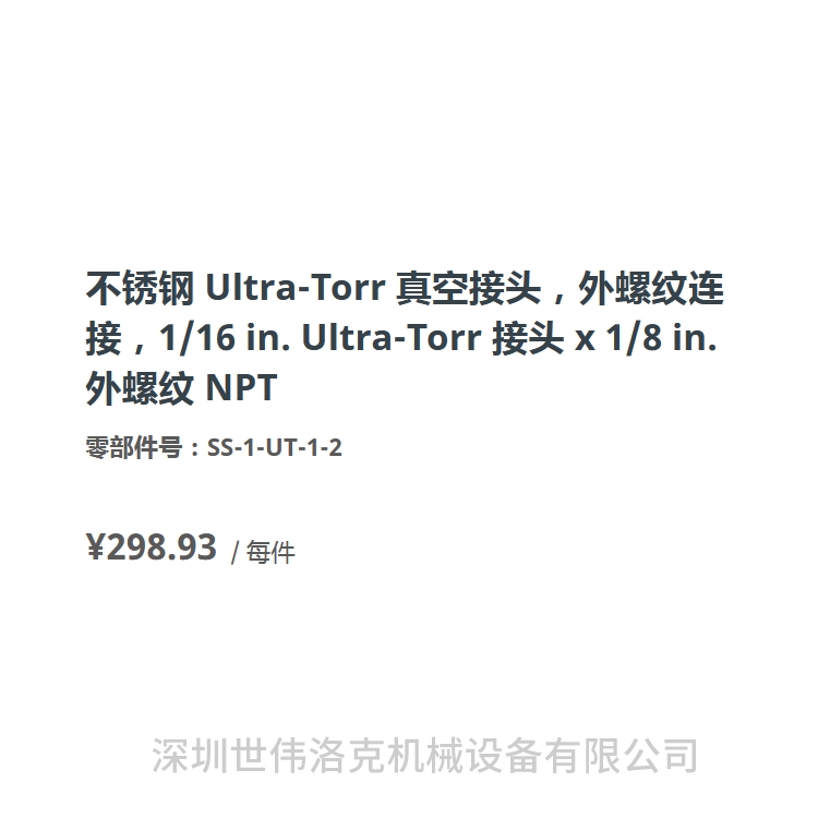 不锈钢 Ultra-Torr 真空接头,外螺纹连接,1/16 in.
