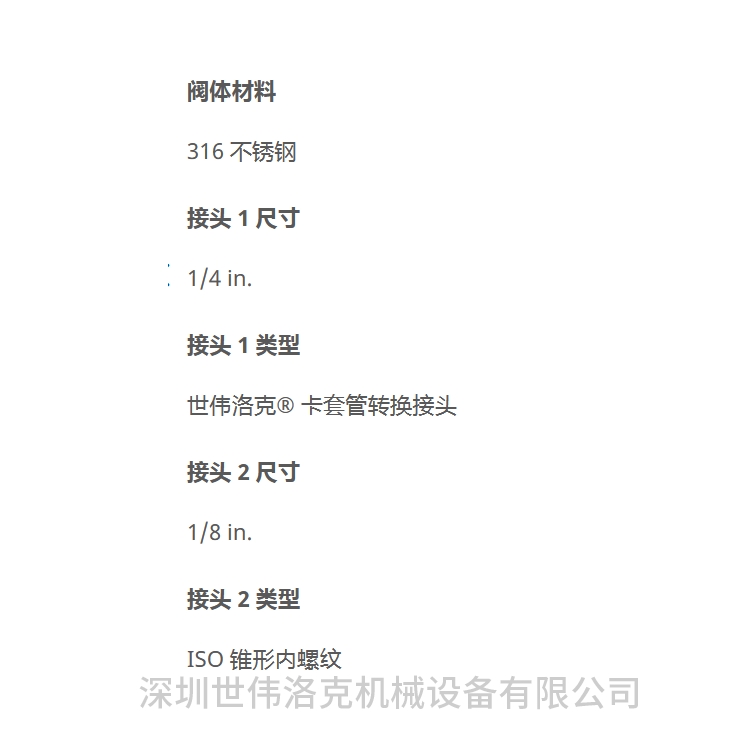 警告: 请勿将Swagelok产品或不符合工业设计标准的元件(包括Swagelok卡套管接头端接)与其他制造商的产品或元件混用/互换。