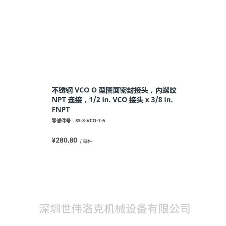 不锈钢 VCO O 型圈面密封接头,内螺纹 NPT 连接,1/2 in. VCO 接头 x 3/8 in. FNPT