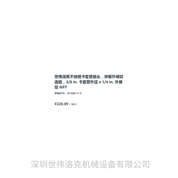 警告: 请勿将Swagelok产品或不符合工业设计标准的元件(包括Swagelok卡套管接头端接)与其他制造商的产品或元件混用/互换。