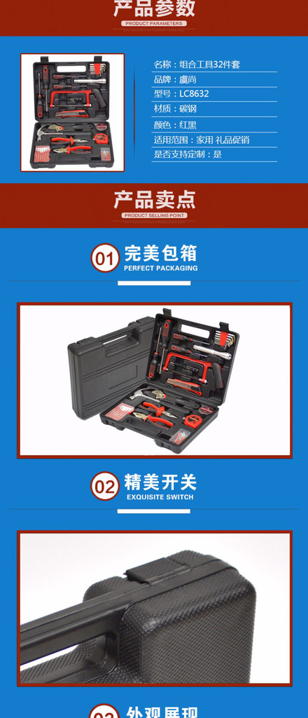 立创LC8632 组合工具箱 五金手动工具套装 礼品组套工具 ** 可一件代发
