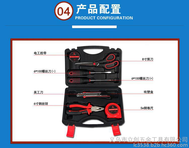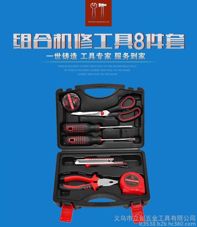 LC8608家用8件套五金手动组合工具套装 车载应急维修工具箱 礼品积分兑换组套工具盒 厂家批发 一件代发可定制LOGO