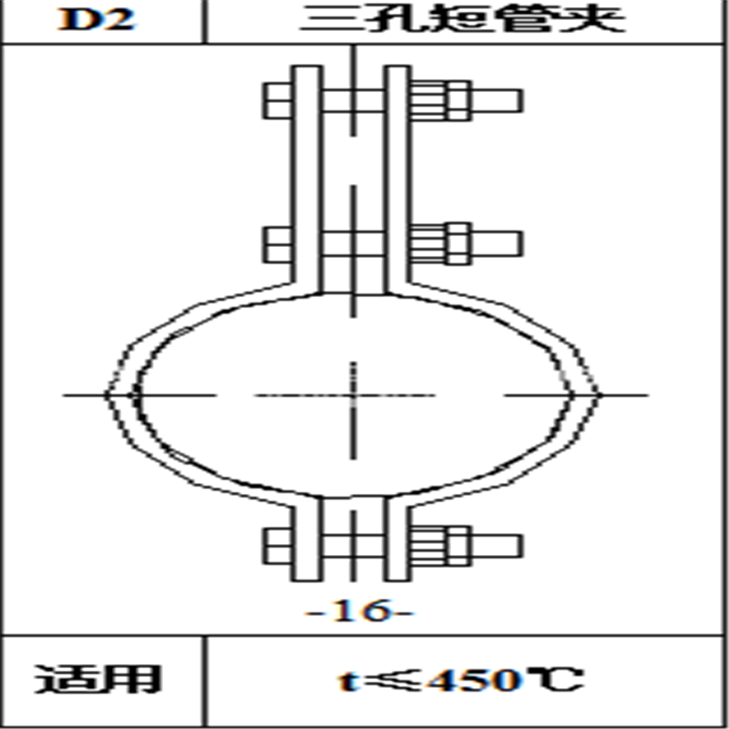 ?? 4.管夹适用管道外径25-3000mm,热温度0℃~560℃,冷温度0℃~-200℃,轴向位移0-400mm,径向位移0-200mm,荷载范围0-2500KN。