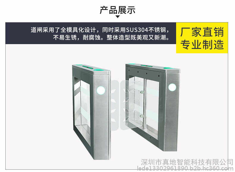 高端摆闸: 主要用于通道出入口管理,具有快速打开、安全、方便等特点,是行人高频率出入通道的理想管理疏导设备。广泛应用于机场、地铁站、车站、码头、景点、公园、商场、写字楼、等人行通道等场所。