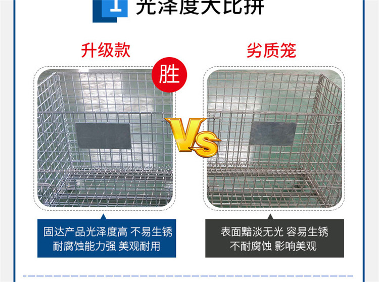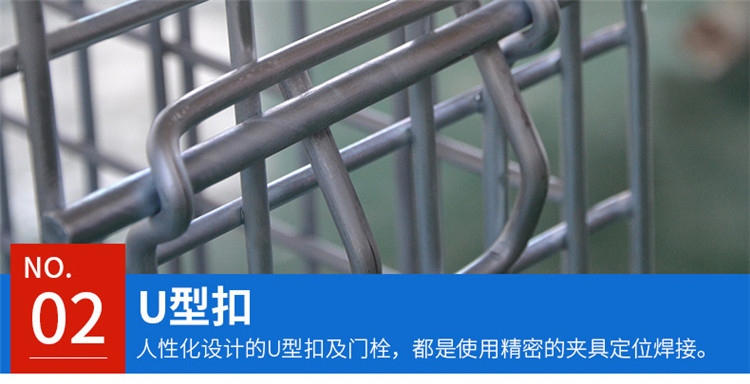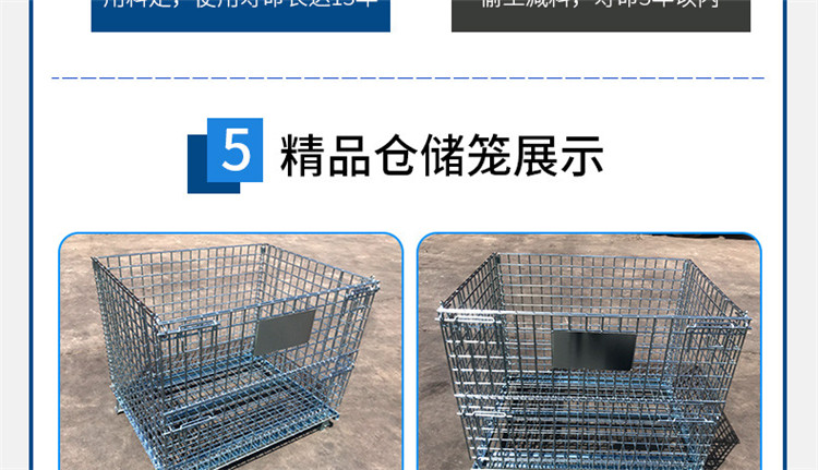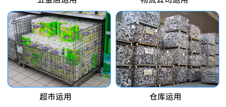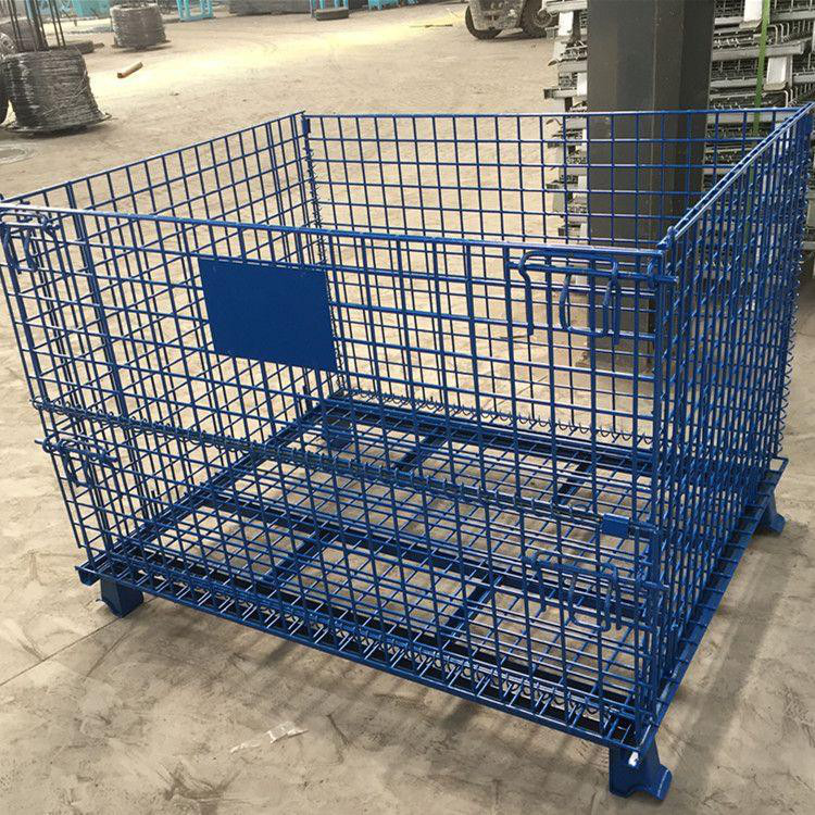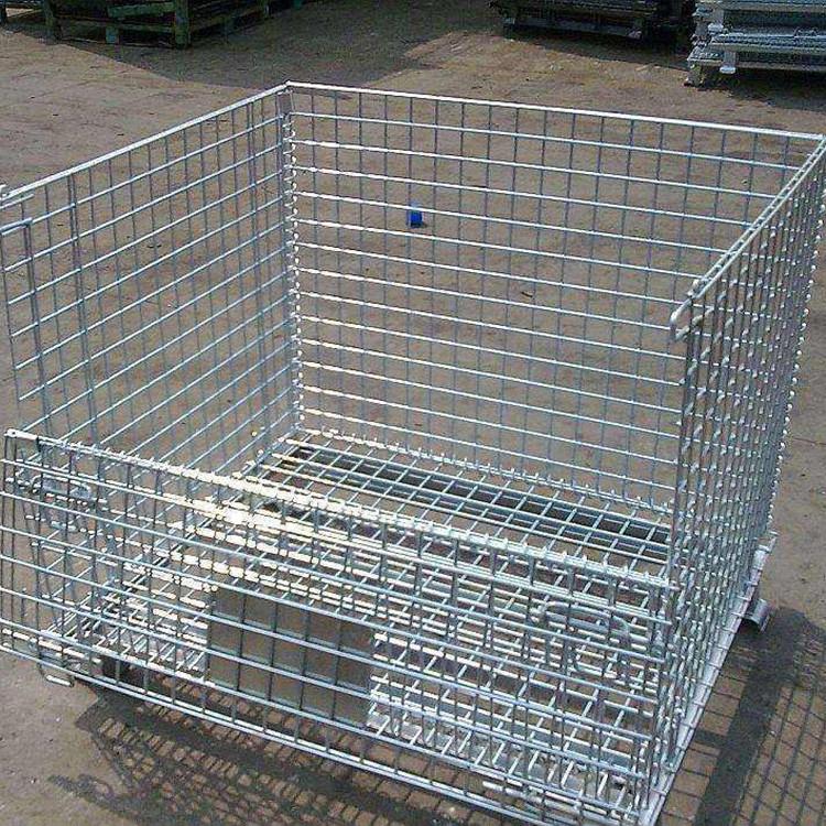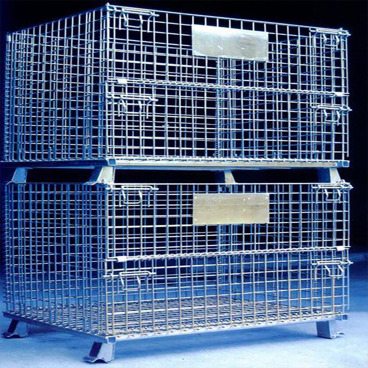 仓储笼又称可折叠式仓储笼:采用钢丝焊接而成,底部以U形槽钢焊接补强;可折叠,可安装万向轮,外形美观、结构坚固、移动方便、装载能力大的特点;可叠四层、以实现仓储的立体化;广泛应用于生产制造企业和大型仓储式超市中;表面镀锌,美观抗氧化,可长时间使用;周转、存放和回收均不污染环境;可与集装箱配套使用,是木质包装箱的换代品。