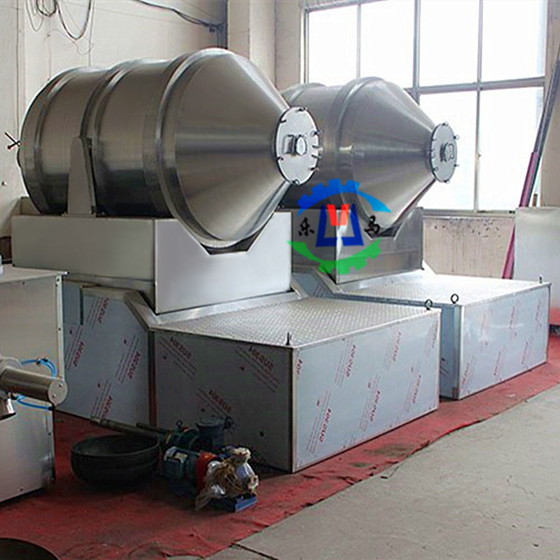 卧式运动混合机的转筒可同时进行二个运动,一个为转筒的转动,另一个为转筒随摆动架的摆动。被混合物料在转筒内随转筒转动、翻转、混和的同时,又随转筒的摆动而发生左右来回的掺混运动,在这两个运动的共同作用下,物料在短时间内得到充分的混合。EYH卧式混料机适合所有粉、粒状物料的混合。