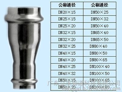双卡压变径直通不锈钢管件规格: