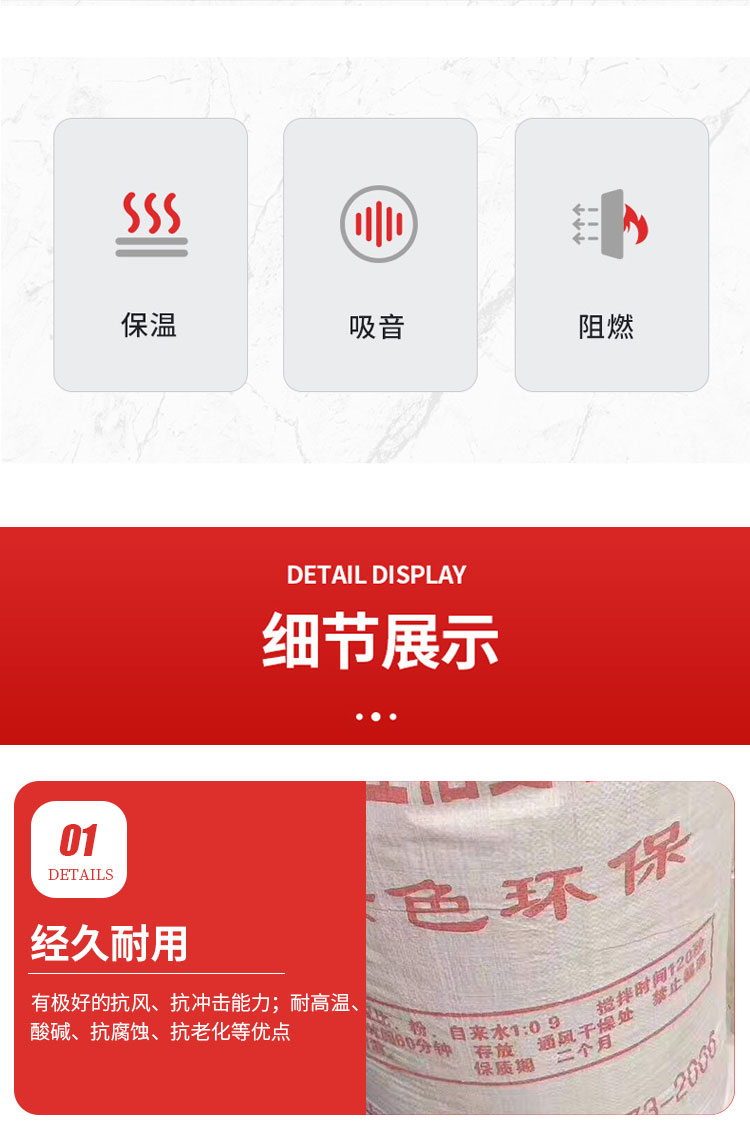 2,性能稳定,耐酸碱,耐腐蚀,不开裂,不脱落,不存在老化问题,与建筑墙体同寿命。