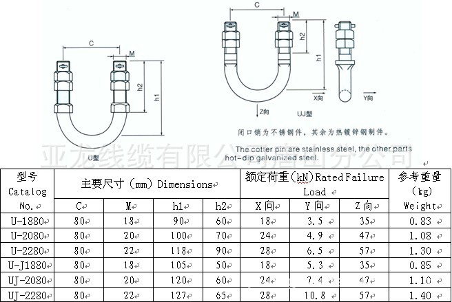 U型螺丝两端分别由挂环与螺纹杆构成,与杆塔连接的U形金具。