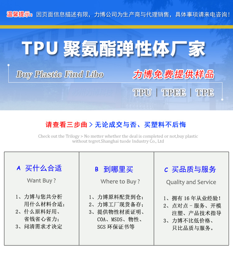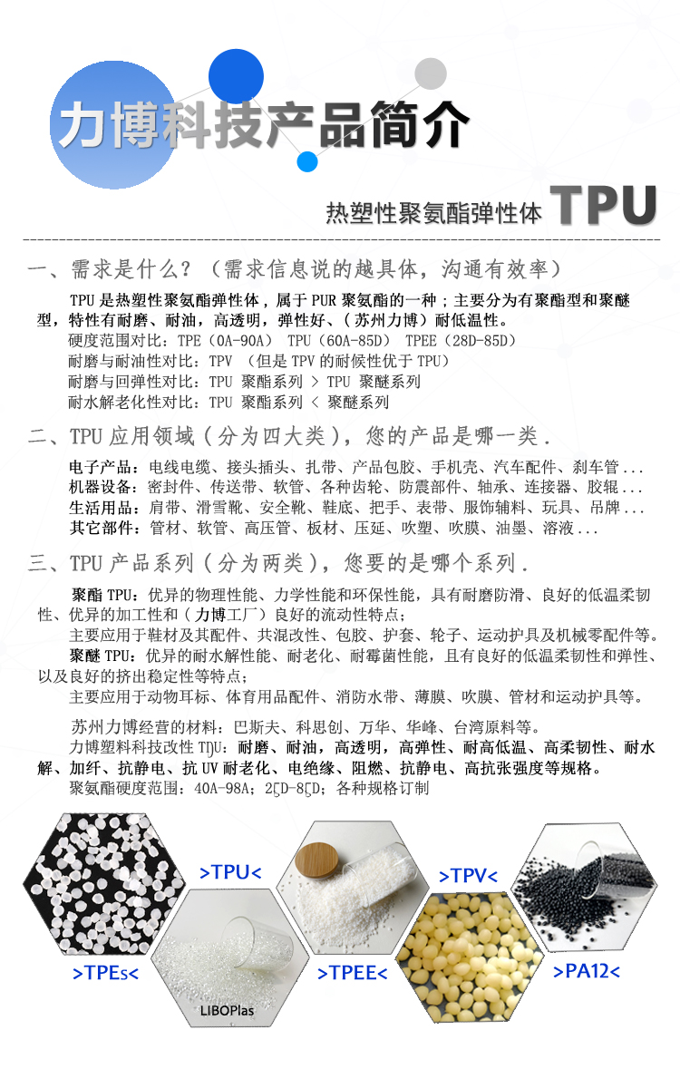 力博高性能已内酯TPU、包胶TPU、芳香族TPU、阻燃TPU、耐油耐污TPU弹性体。