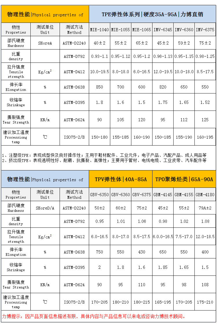 力博全程提供详细TPE、TPR、TPO、TPEE、TPU、PA12弹性材料产品资料。