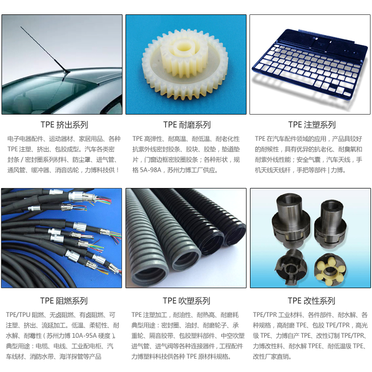 TPE、TPV、TPU弹性体材料具有耐油性、耐化学性、耐候性、耐热、耐寒性能、高温回弹性;