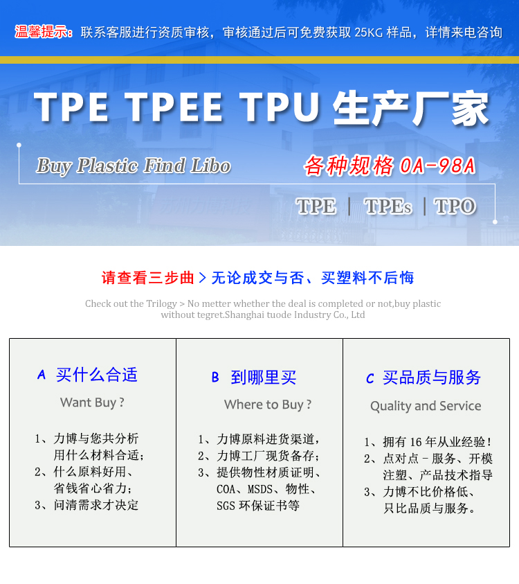 苏州力博塑料科技有限公司是一家十多年的TPE供应商,专业从事研发,生产,销售及服务;