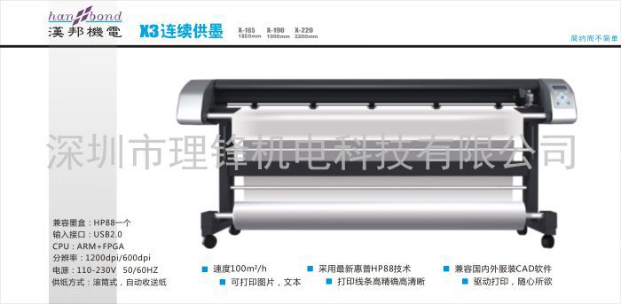 3)打印速度快。打印速度高达95平方米/小时,相当于同等幅宽笔式机速度的8~14倍。
