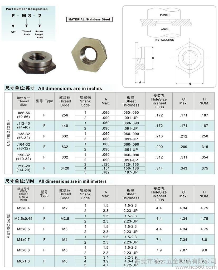 镶入螺母F又叫齐平螺母,因压入薄板后两面与板平齐而得名。