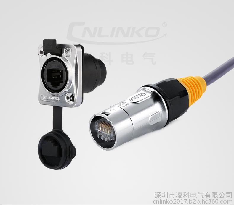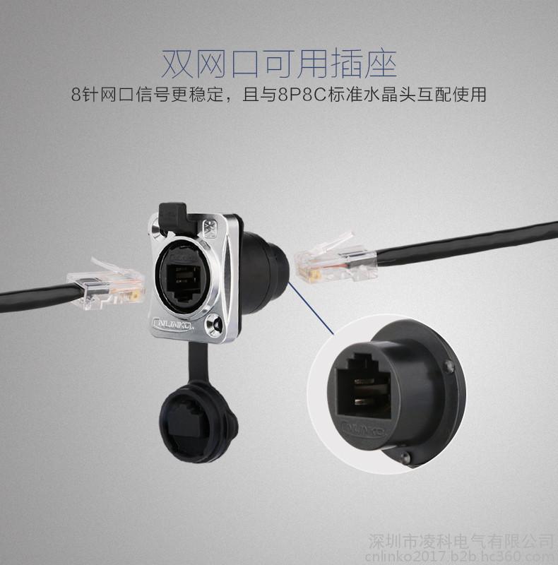 凌科YT-RJ45 以太网络网线连接器 双网口直通式RJ45防水航空插头插座连接器