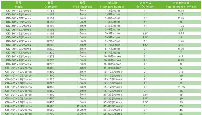 滤芯长度:单节、二节、三节、四节(每10″为一节);