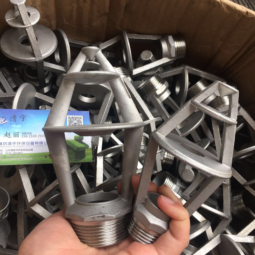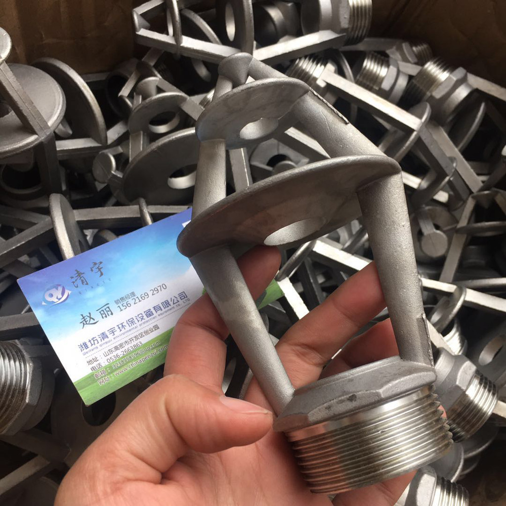 潍坊清宇环保设备有限公司,是一家专业生产脱硫喷嘴与冷却塔喷嘴的厂家, 公司主营碳化硅蜗壳喷嘴,螺旋喷嘴,不锈钢316L喷嘴,氧化铝陶瓷喷嘴,PP喷嘴;冷却塔冷水塔喷嘴有:不锈钢三溅式喷头(三盘/花篮式喷头),abs三盘喷嘴;****价廉,支持来样加工,欢迎广大客户来厂参观,洽谈合作。