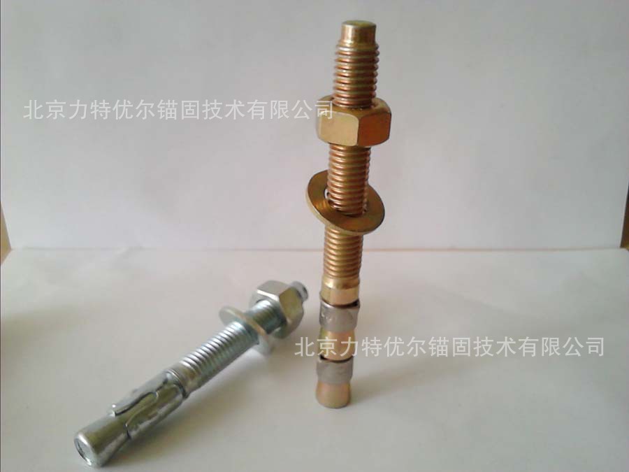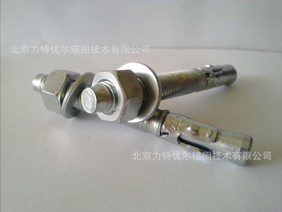 1、螺杆头部锥形体与套环相配合,放上垫片和螺母形成完整的锚栓体。
