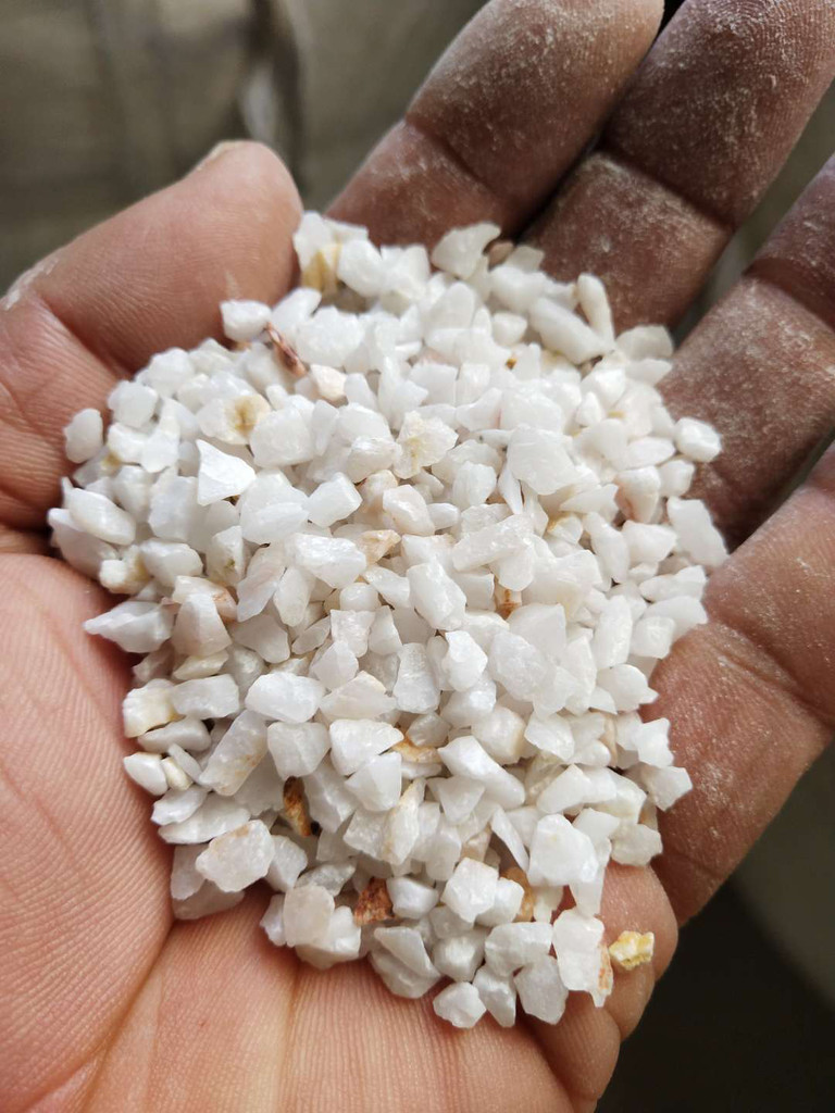 采用石英矿经粉碎、筛选、水洗等工艺加工而成。外观呈多棱形、球状,纯白色,具有机械强度高、截污能力强、耐酸碱性能好等。