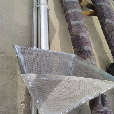 不锈钢螺旋输送机工作时旋转的螺旋叶片将物料推移而进行输送,使物料不与螺旋提升机叶片一起旋转的力是物料自身重量和螺旋提升机机壳对物料的摩擦阻力。螺旋提升机旋转轴上焊有螺旋叶片,叶片的面型根据输送物料的不同有实体面型、带式面型、叶片面型等型式。螺旋提升机的螺旋轴在物料运动方向的终端有止推轴承,在螺旋管较长时,应加中间吊挂轴承。
