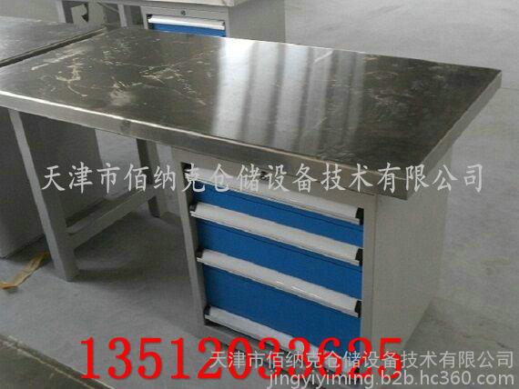 天津工作台系列采用标准型工具柜,加装工具柜后能更合理的利用空间,存放并保护工具。柜体规格为600W*545D*685H。桌面厚度为50MM,平均承重为1000KG,桌面平坦,经长期使用绝不变形,可直接在工作台上加装台钳。柜体抽屉为双导轨,可**打开。
