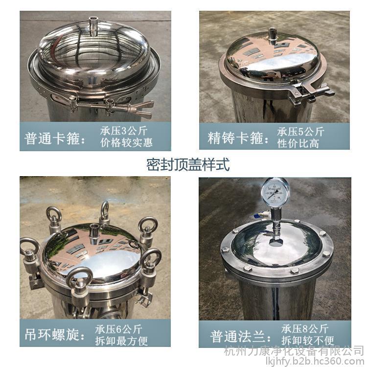 器具有耐污能力高、耐腐蚀性强、耐温好、流量大、操作方便、使用寿命长等诸多优点。过滤器按顶盖不同可分为:卡箍式、普通法兰和活动法兰式三种。
