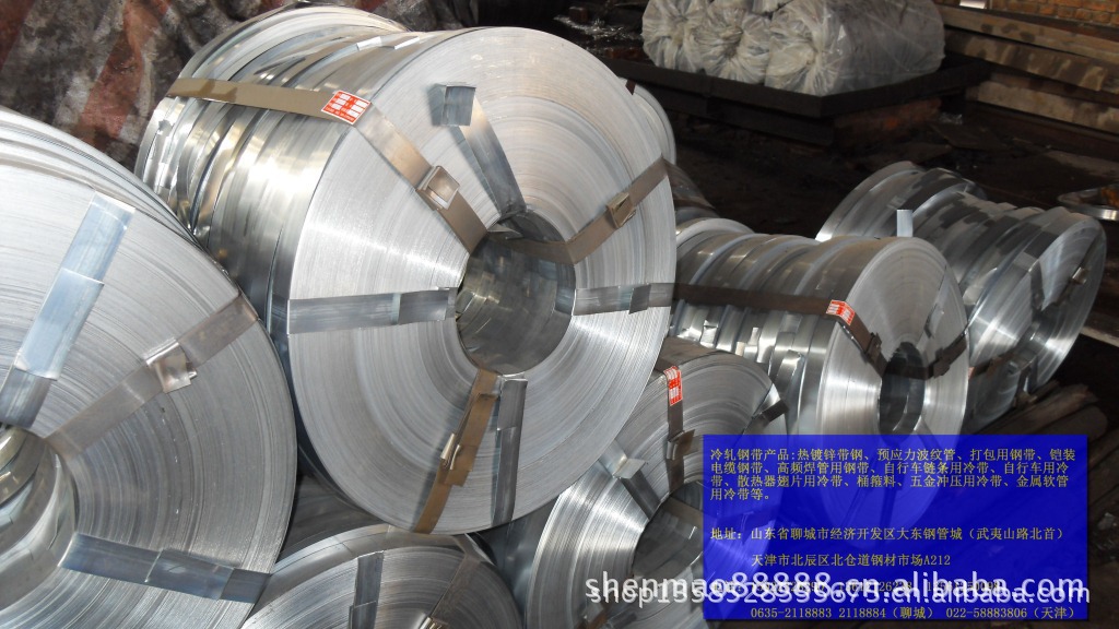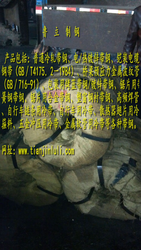 产品包括:普通冷轧带钢、电/热镀锌带钢、铠装电缆用镀锌钢带(GB/T4175.2-1984)、桥梁预应力金属波纹管带钢(GB/716-91)、包装用烤蓝带钢/镀锌带钢、锯片用带钢、弹簧钢带钢、锯片用合金带钢、塑窗钢衬带钢、高频焊管用钢带、自行车链条用冷带、自行车用冷带、散热器翅片用冷带、桶箍料、五金冲压用冷带、金属软管用冷带等各种带钢。