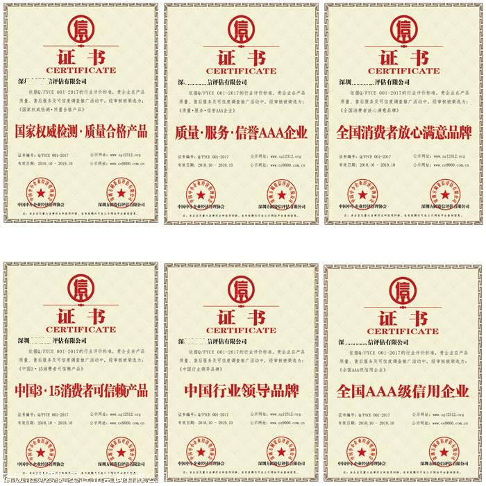 《中国行业十佳诚信企业》《全国XX行业十佳名优品牌》