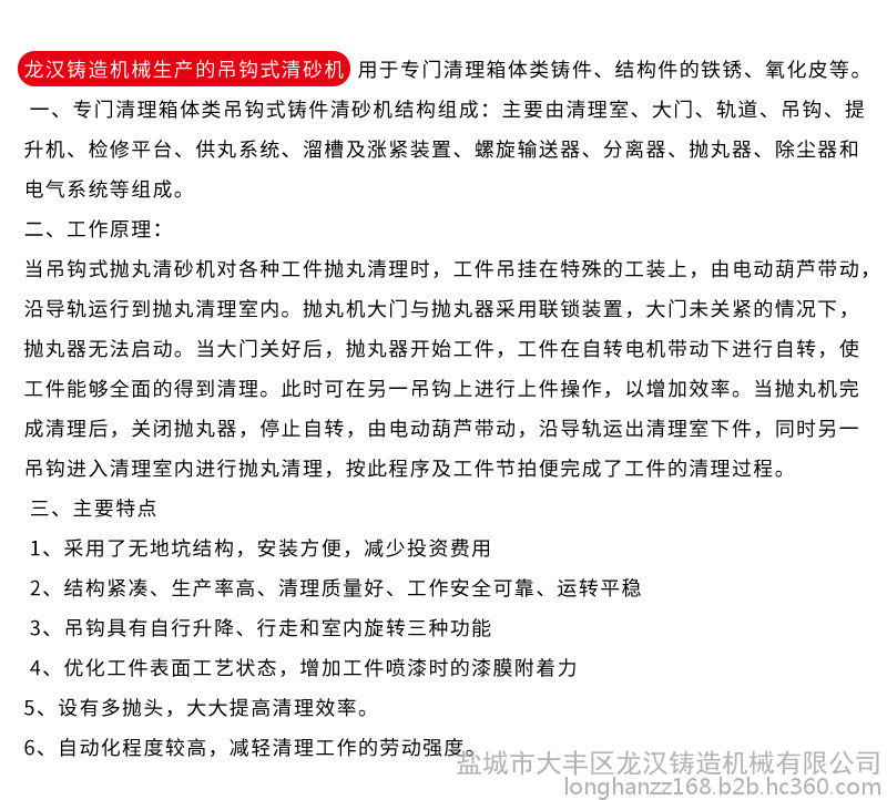 【龙汉铸造】厂家供应 抛丸清理机 Q3740吊钩式抛丸机