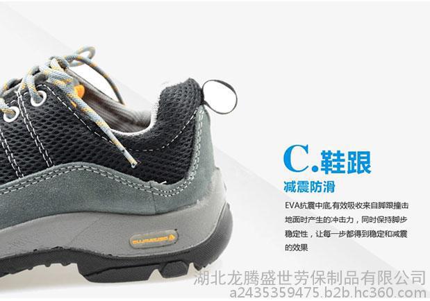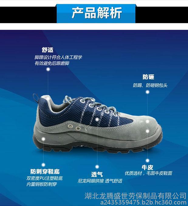品牌:兴龙洋 订货号:301322(防穿刺) 尺码:35-46 产品描述:进口毛面牛皮安全鞋,低帮、轻便型,双密度聚氨酯(PU)注塑鞋底,带钢包头和钢底板。防砸、防穿刺、防静电、耐磨、耐油。 颜色(牛皮色网眼色): 1.灰色蓝色2.灰色黑色