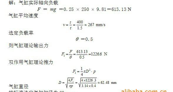 气缸的实际负载是由实际工况所决定的,若确定了气缸负载率q,则由定义就能确定气缸的理论输出力,从而可以计算气缸的缸径。