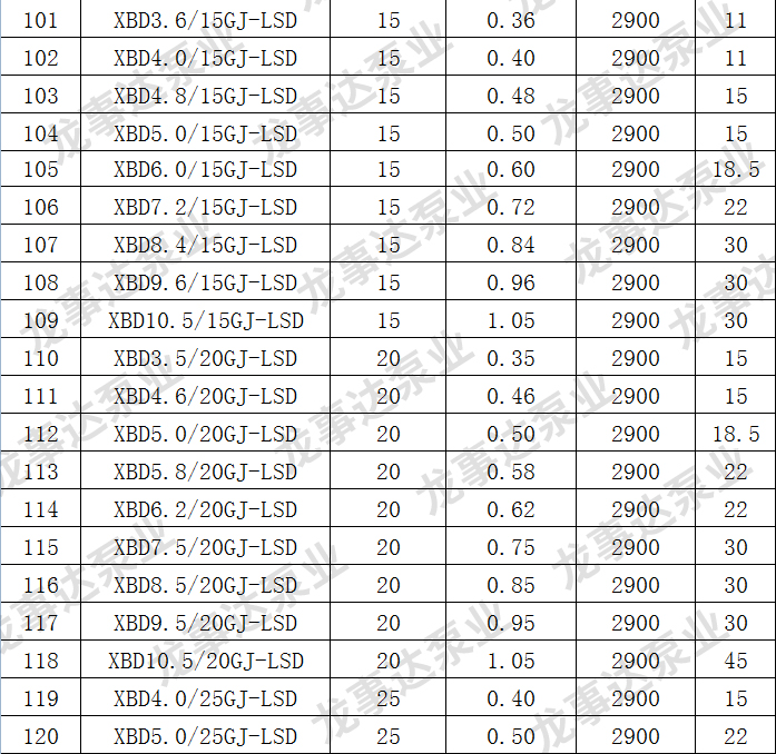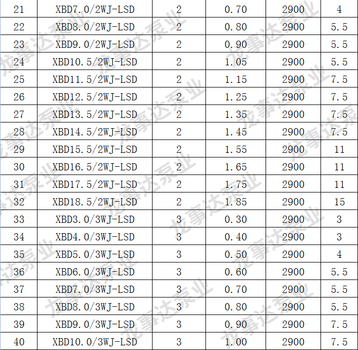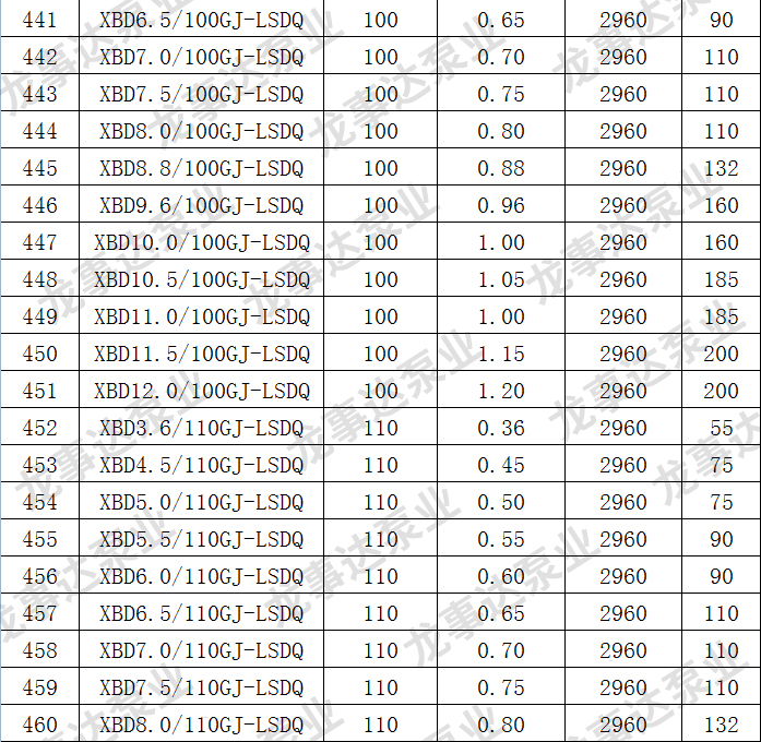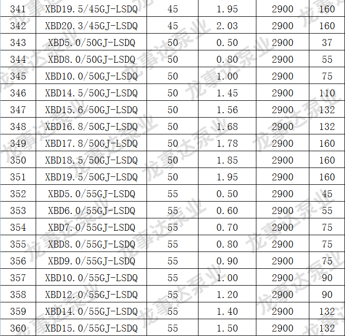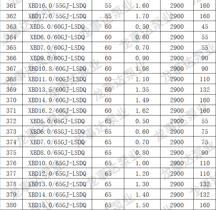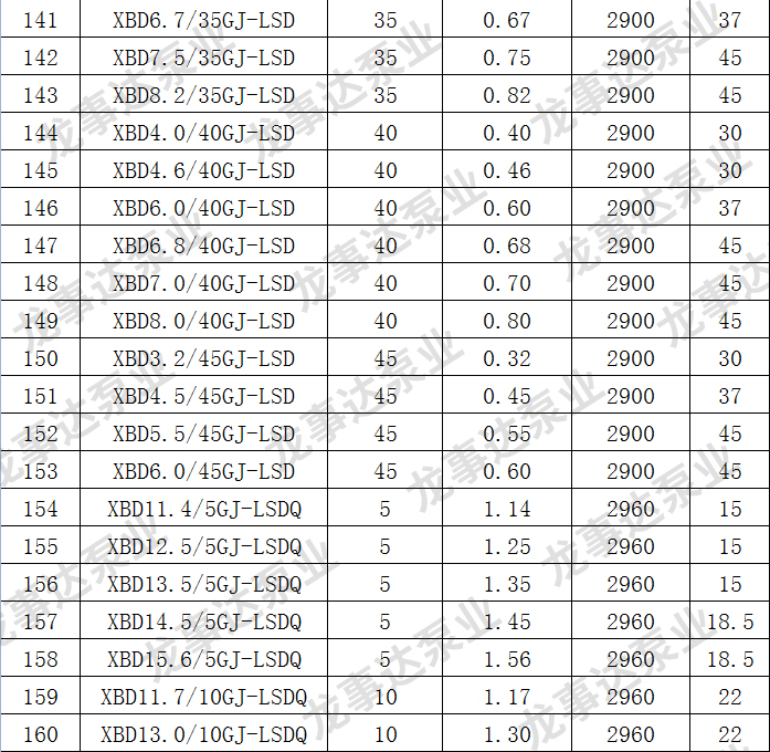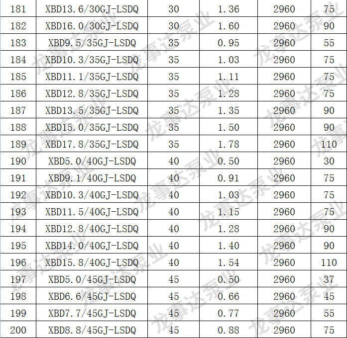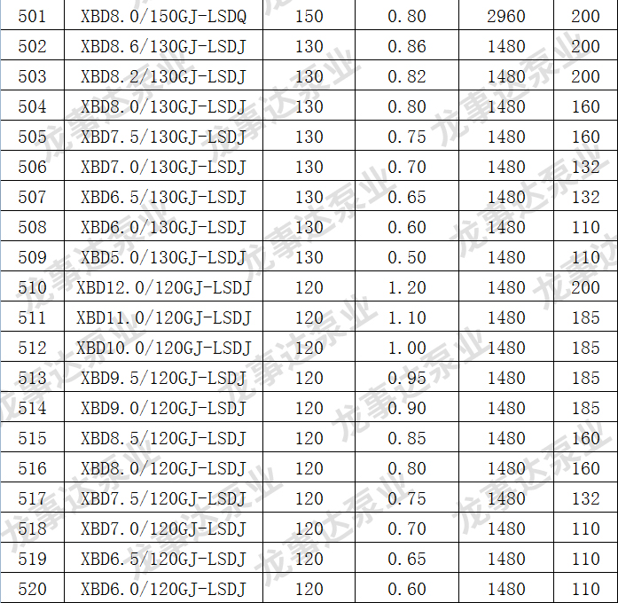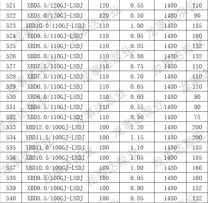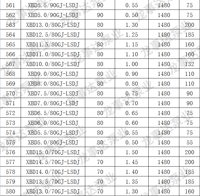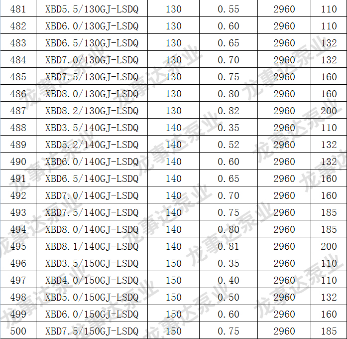 龙事达长轴深井消防泵主要性能参数: