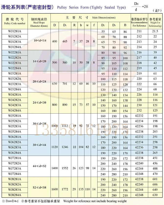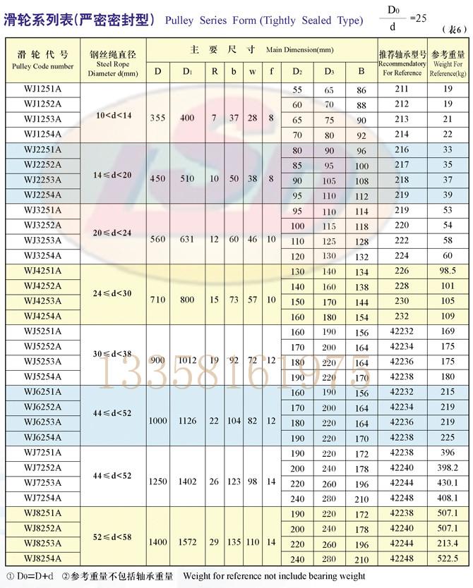 ??六、精度高:径向跳动为1/1000D(D-滑轮直径),超过西德标准DIN15063-77规定的5/1000D, 侧向跳动为2/1000D超过日本标准3/1000D.
