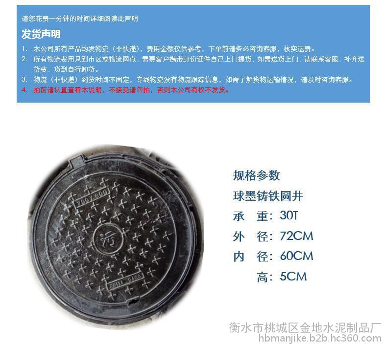 衡水金地球墨铸铁井盖雨水电力污水电力井盖圆形井盖Φ600承重30T
