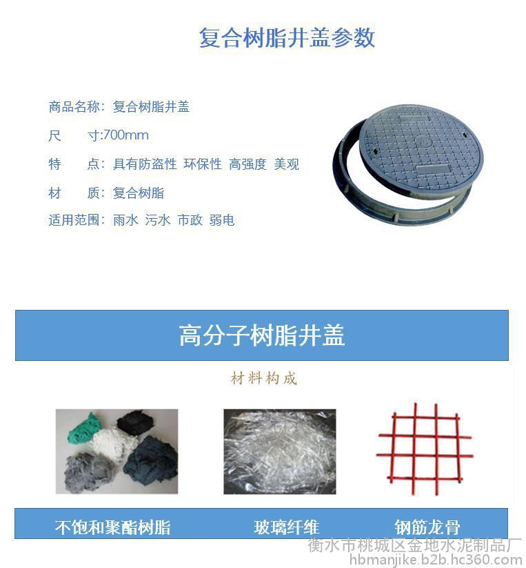 金地复合树脂井盖环保通信窨井盖污水雨水电力圆井700承重5-10T