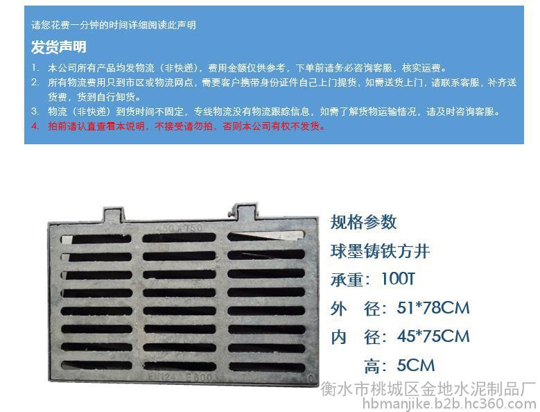 金地球墨铸铁方井450*750雨水污水排水道排水沟井盖承重100T