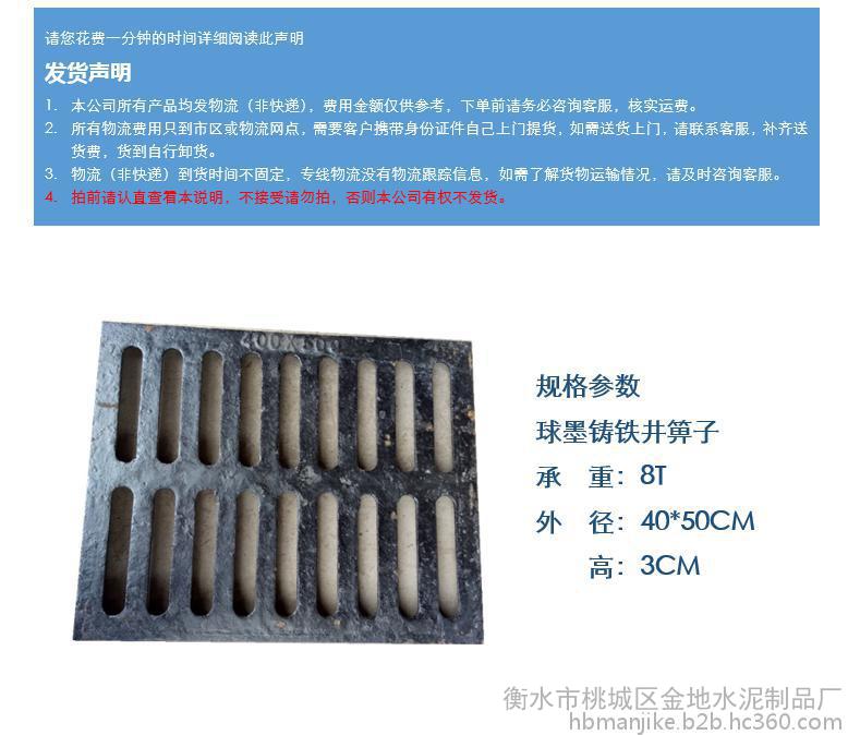 金地球墨铸铁井篦子雨水箅子方形井盖40*50承重8T
