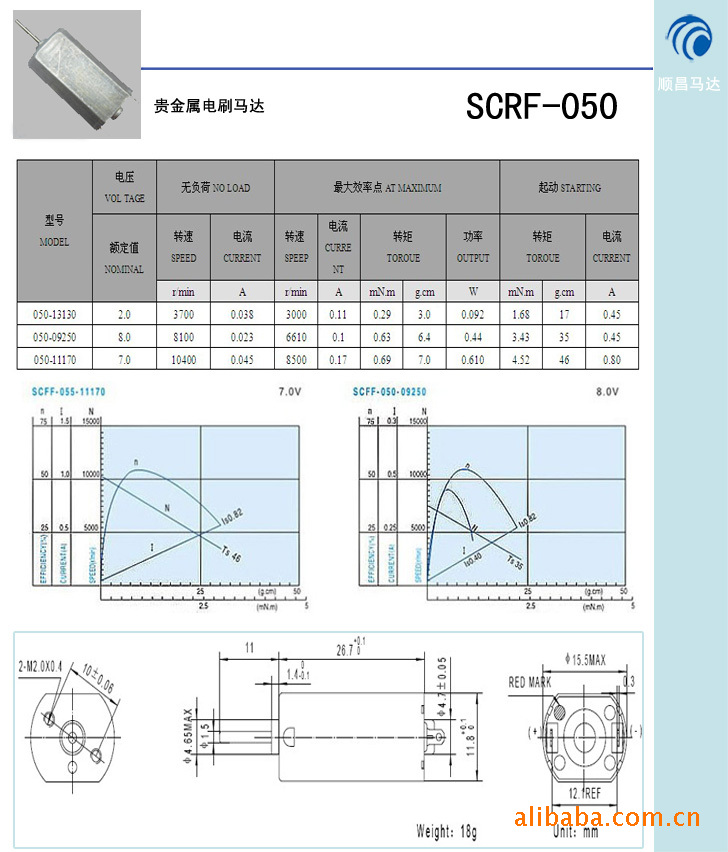 转速(NO—)与堵转扭矩(TS)几乎会随电压成正比例改变,但电流线仍为同一倾向<例如>当马达的电压为DC1.5时,其TS为25g.cm,NO为500r/min,若电压被调至Dc3.0v时。
