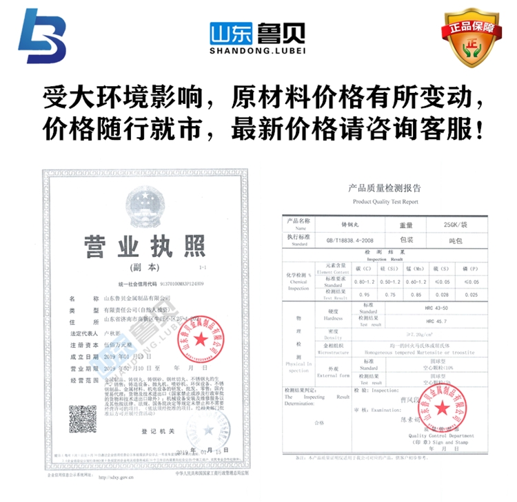 山东鲁贝生产制造的钢丸: 粒度均匀,能消除应力, 提高工件表面强度 ;