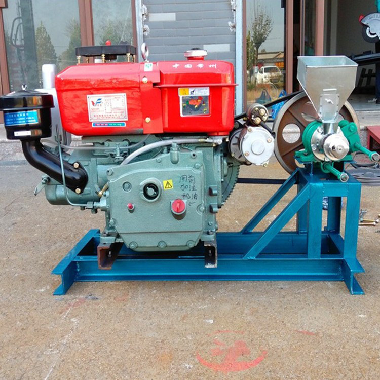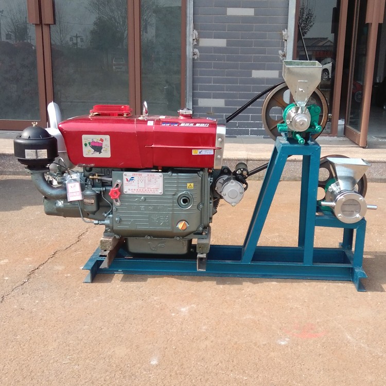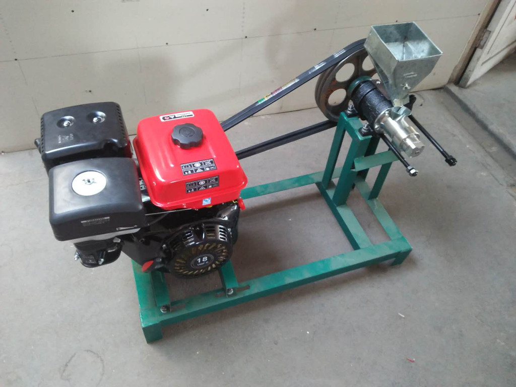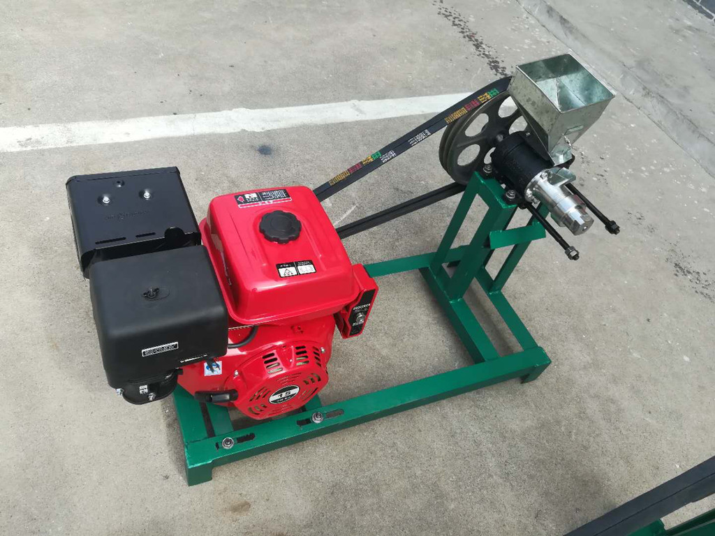 1、用方木或槽钢,根据膨化机和电机脚孔尺寸做成长方形底座,把膨化机和电机固定在底座上,挂上三角带并调紧(B型带)。
